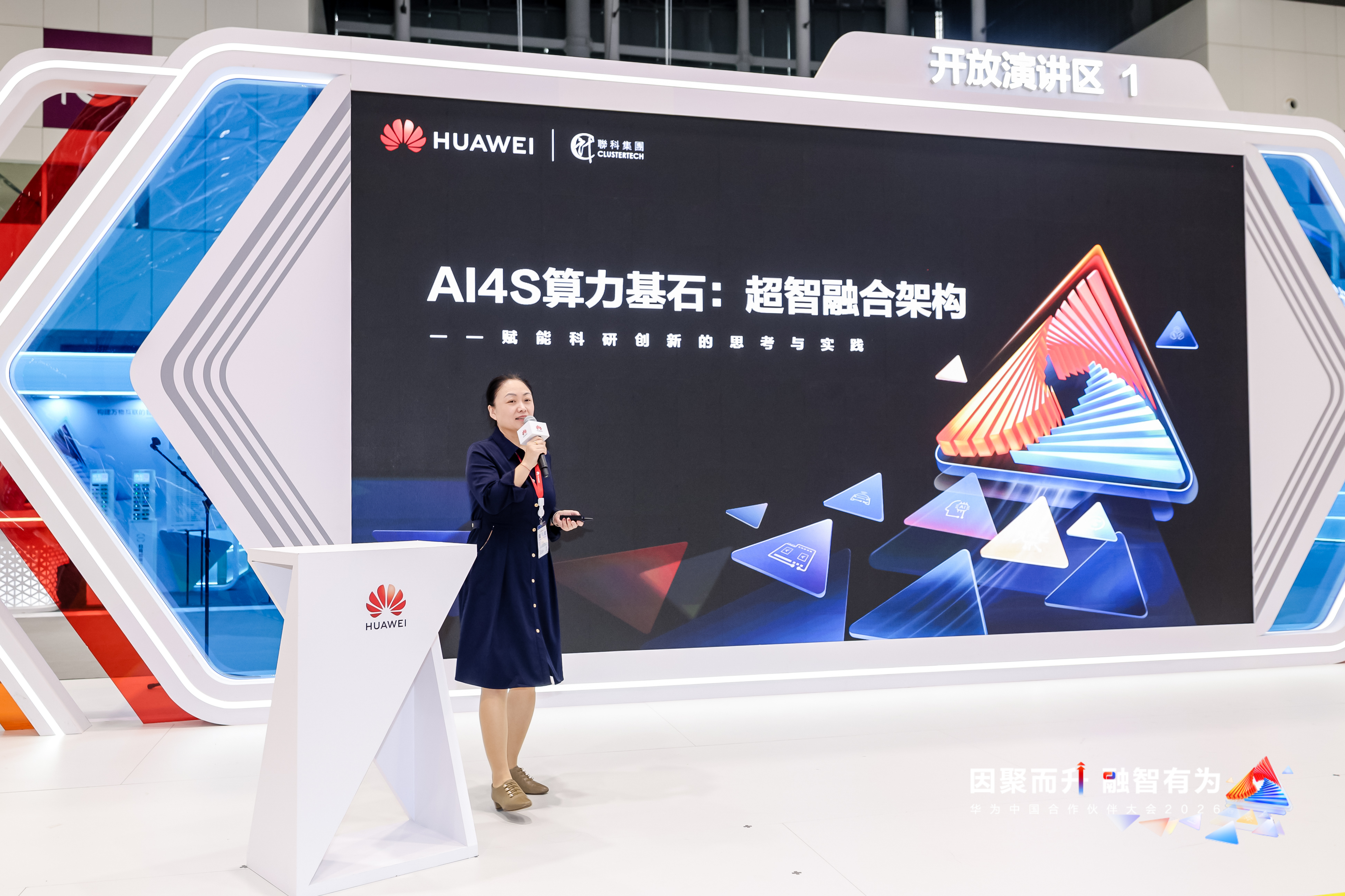 作为华为重要合作伙伴,联智科技受邀出席大会Open Speech环节,联智科技CEO付鸿雁发表题为《AI4S算力基石:超智融合架构——赋能科研创新的思考与实践》的主题演讲,深度分享超智融合算力建设理念与落地实践,携手华为共筑科研创新与行业数智化的算力新底座。
