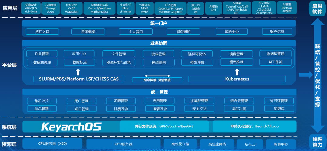 当前,在工程仿真、AI4S、能源勘探、生命科学等众多领域,科学计算与AI计算任务正加速融合,对算力管理平台带来新的挑战:既要支持高精度、高稳定的科学计算,又要支持大规模、高并发的AI计算。在“稳定”与“求新”之间,异构兼容、灵活调度的底层操作系统,对于算力管理平台的价值正在不断凸显。