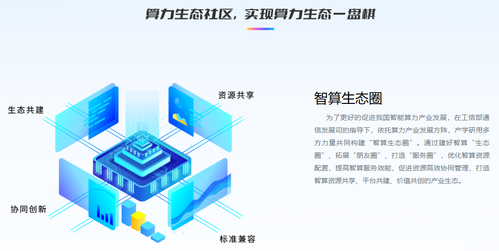 中国算力平台现成功实现平台贯通、主体贯通、资源贯通、生态贯通、场景贯通“五大贯通”。其中,“生态贯通”即搭建算力生态社区,依托算力产业发展方阵、智算生态圈等载体促进产学研用深度联动,形成协同共进的“算力生态一盘棋”。